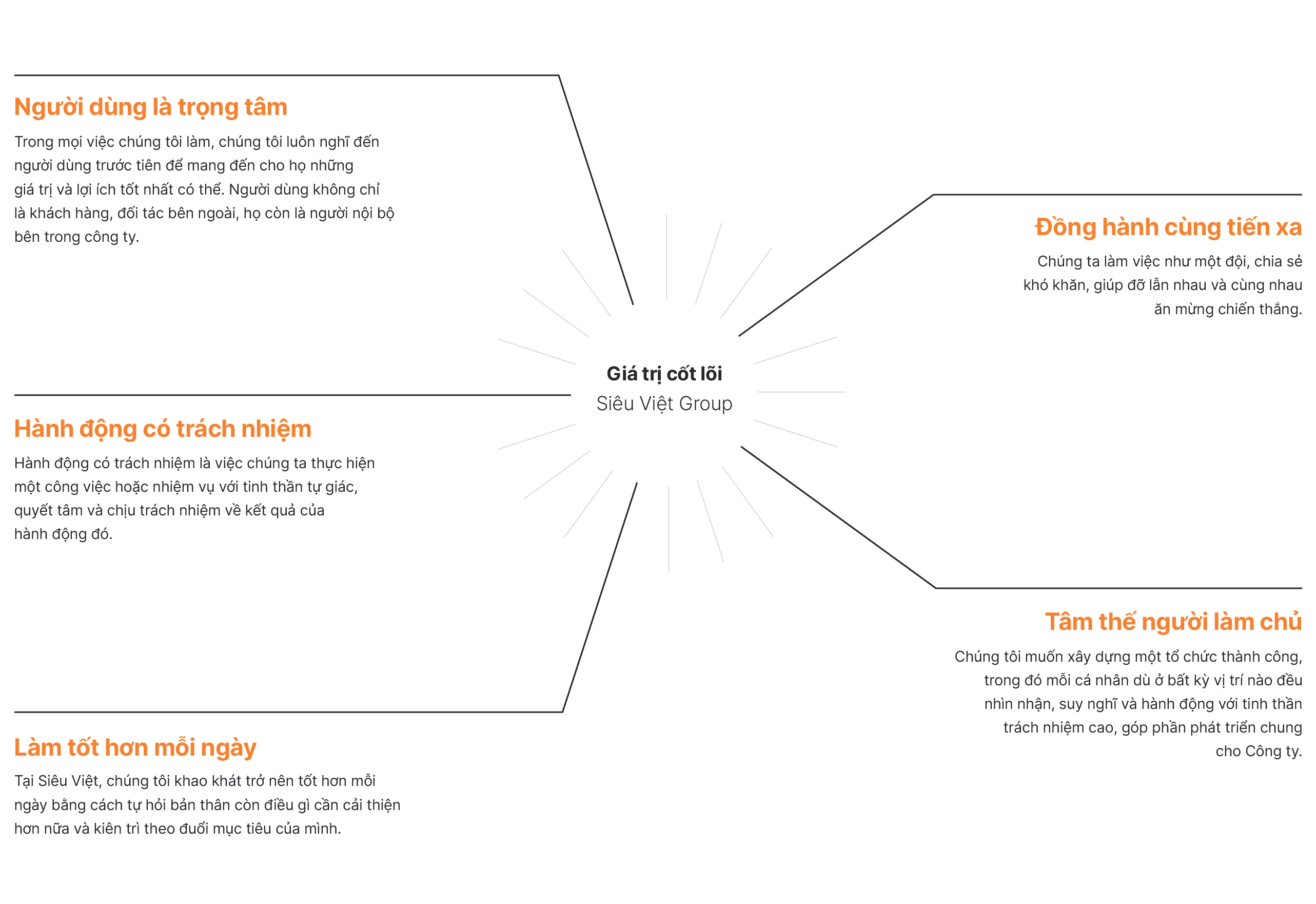 Tại Siêu Việt Group, giá trị cốt lõi dẫn đường cho mọi hành động, tạo nên chất lượng dịch vụ được cung cấp: